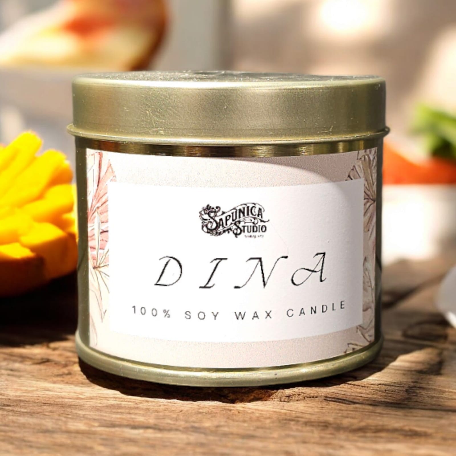 Osvježite svoj dom egzotičnim mirisima sa našom ručno rađenom svijećom i mirisom manga i papaje, smještenom u elegantnoj zlatnoj aluminijskoj posudi. Naša svijeća teži 150 grama i nudi vrijeme gorenja do 40 sati, pružajući dugotrajan i očaravajući miris.